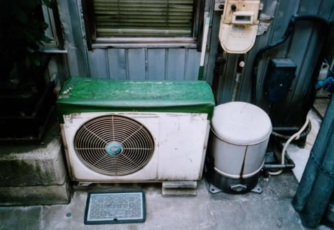 東京ではなにせ庭がないくらいなので、室外機を隠せる場所まではない。