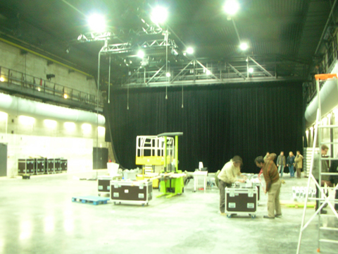Le LiFE内の様子。テクニシャンたちが忙しく設営中。明日から僕も参加。日本人のヒデさんにあった。彼もアーティスト。かなり面白い作品を作っています。